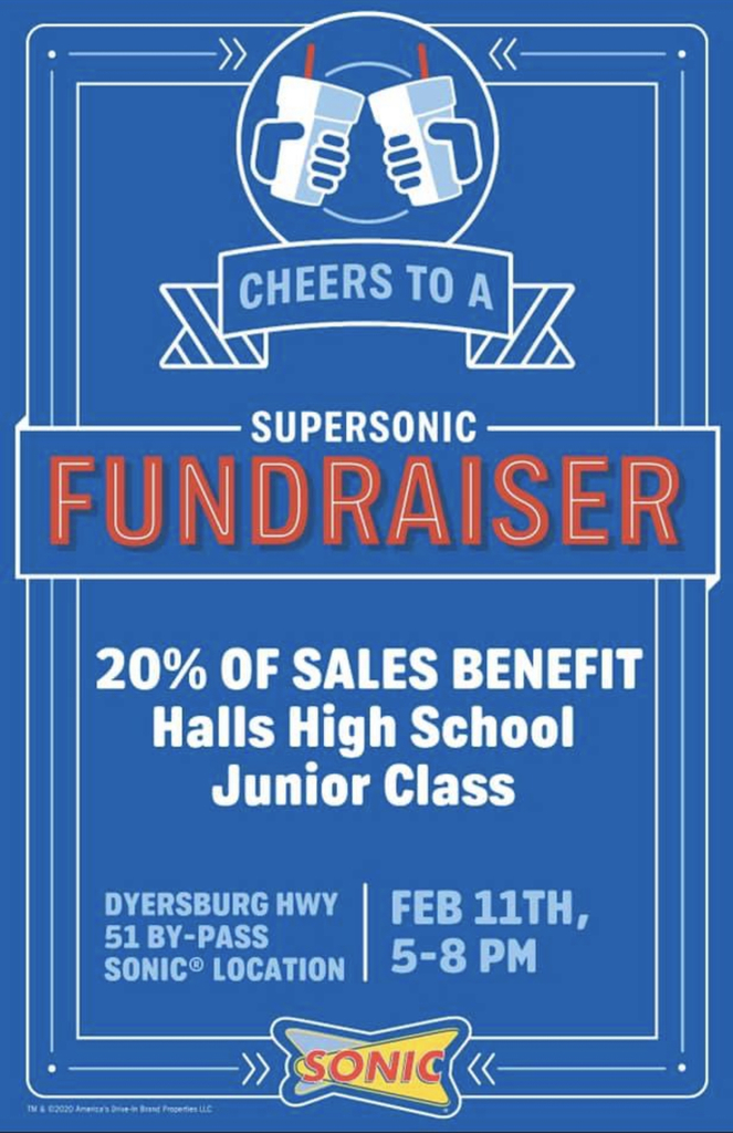 HHS needs your help! Go to Sonic(Dyersburg) on Tuesday and have dinner 5-8pm and 20% of sales benefit HHS!