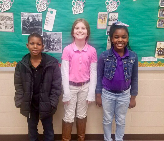 The winners for our 3rd Grade Spelling Bee are 1st place Kamari E., 2nd place Lakely S., and 3rd place Brandon S. All of these winners will participate in the Lauderdale County Spelling Bee on February 26th at the RHS Little Theater. Information will be sent home with these students soon. SO PROUD OF EACH ONE OF YOU!!