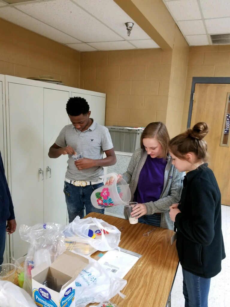 Today, 8th grade students created rock layers and embedded a "fossil." This was a prelude to discussing fossils and getting to experience them firsthand next week. The students will be digging out their "fossil" next week.